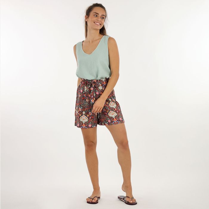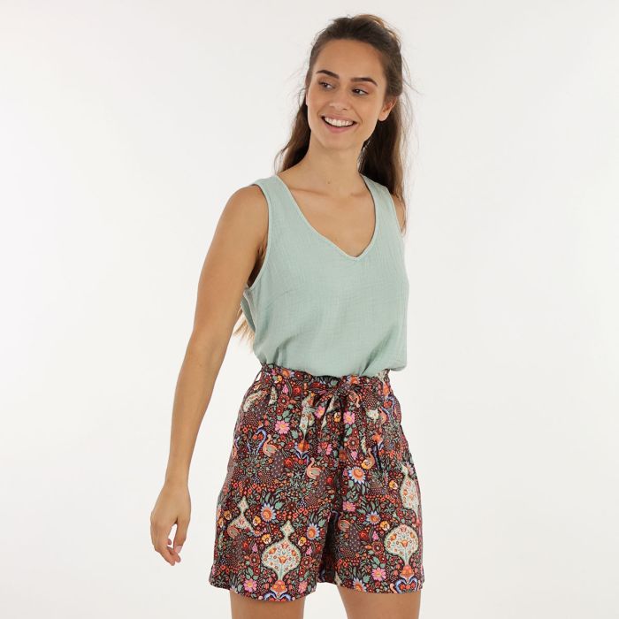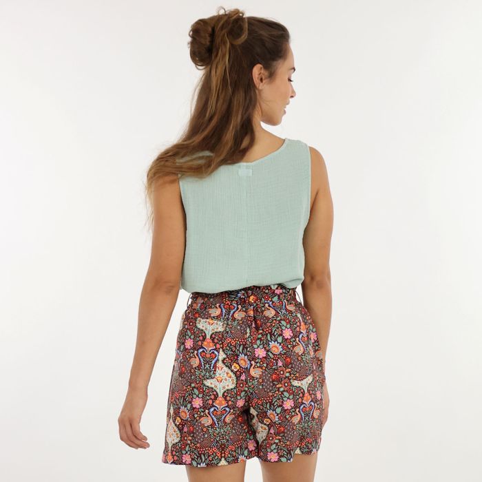 Le débardeur CALLUMA en gaze de coton est teinté en plongé grâce à des pigments dye naturelles, pour un effet vieilli fort sympathique.