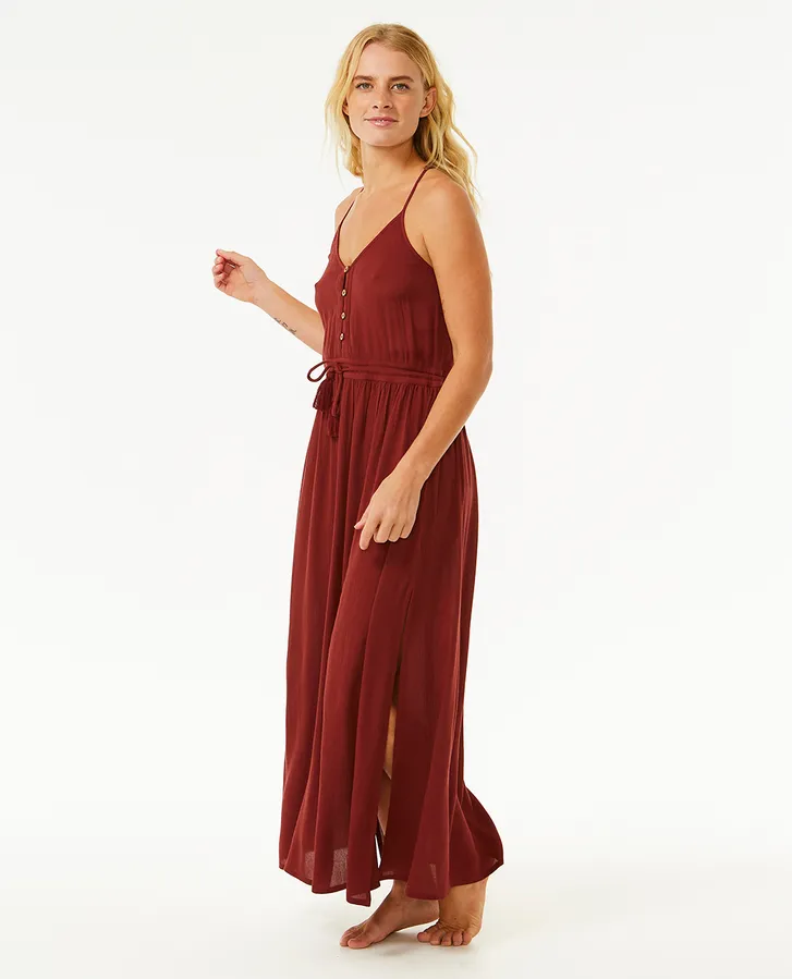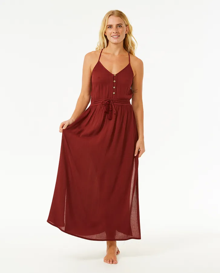 Le modèle Classic Surf est une robe longue pour femme étonnante et simple. Modèle 100 % viscose légère et douce avec bretelles ajustables, fermeture à boutons et détails de ceinture.