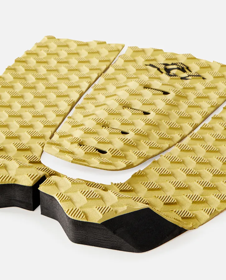 Le modèle 3 Piece Traction de Rip Curl est un « tail pad » en trois parties doté d’un kicktail 25 mm, d’une voûte 9 mm et d’un adhésif 3 M pour une adhérence durable. Il comprend un profond sillon en forme de losange et bénéficie d’une base à rainure souple pour une meilleure adhérence.